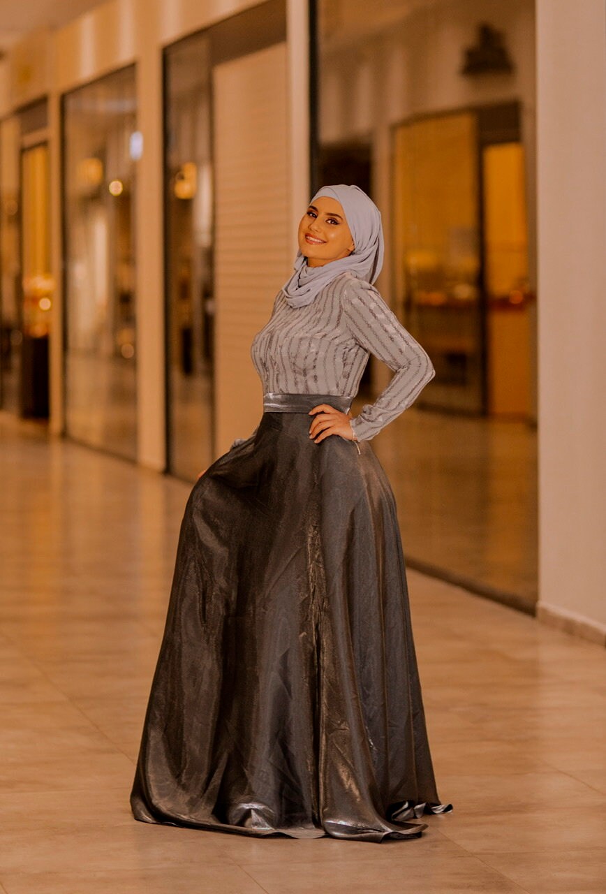 Beautiful long Grey Satin dress ideal for proms parties and other events , carefully handmade.