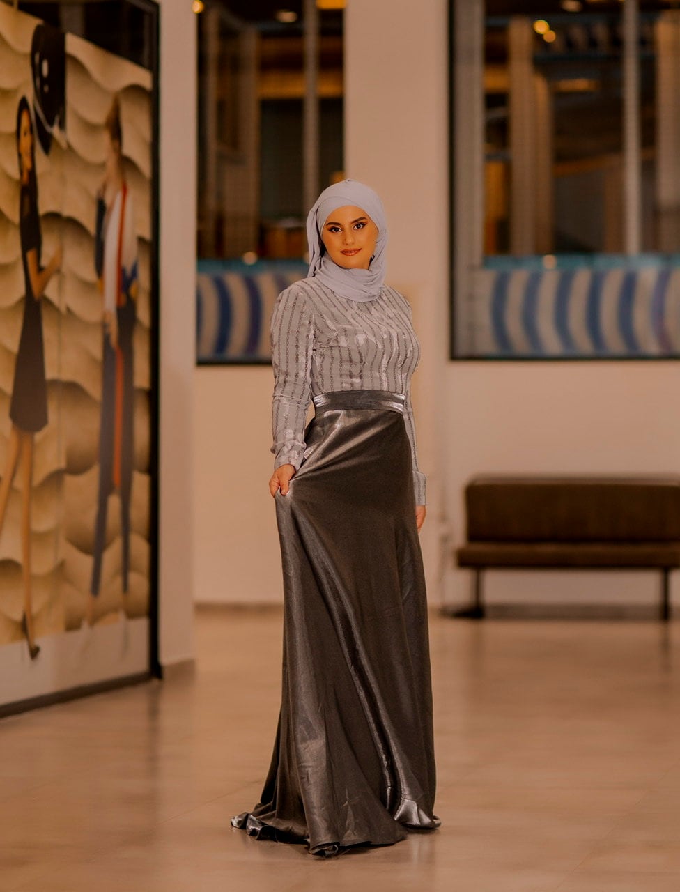 Grey Silver/ Laminated Pane / Velvet / Satin Long Dress/ Satin Dress/ Maxi Dress/ Bridesmaid Dress/ Grey Satin Dress/ Modest Dress/