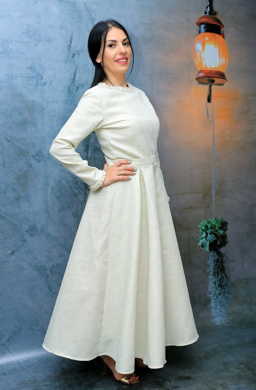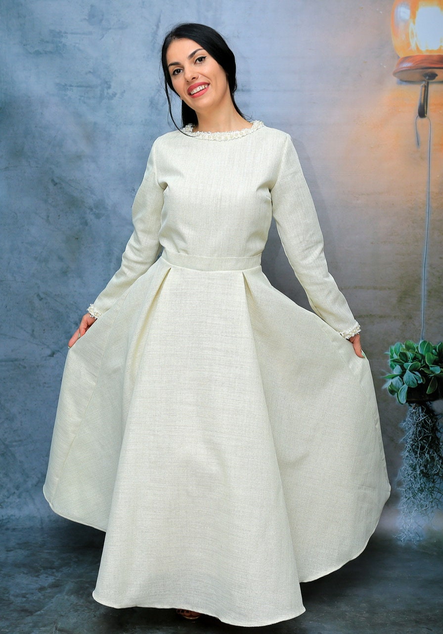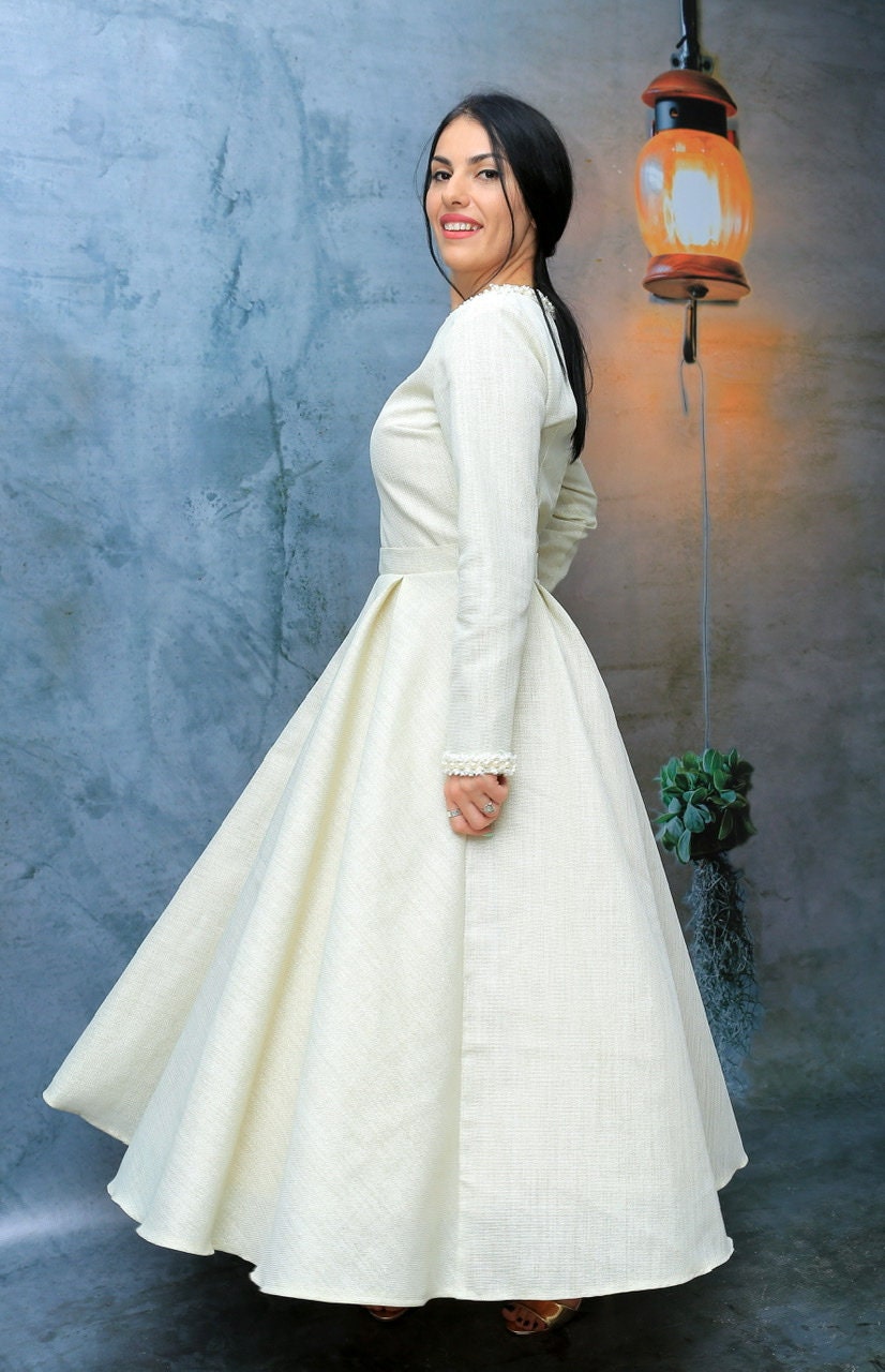 Stone Medium Weight Handkerchief Linen Dress, Engagement Party Dress, Bridal Dress, Appliqué, Wedding Dress,