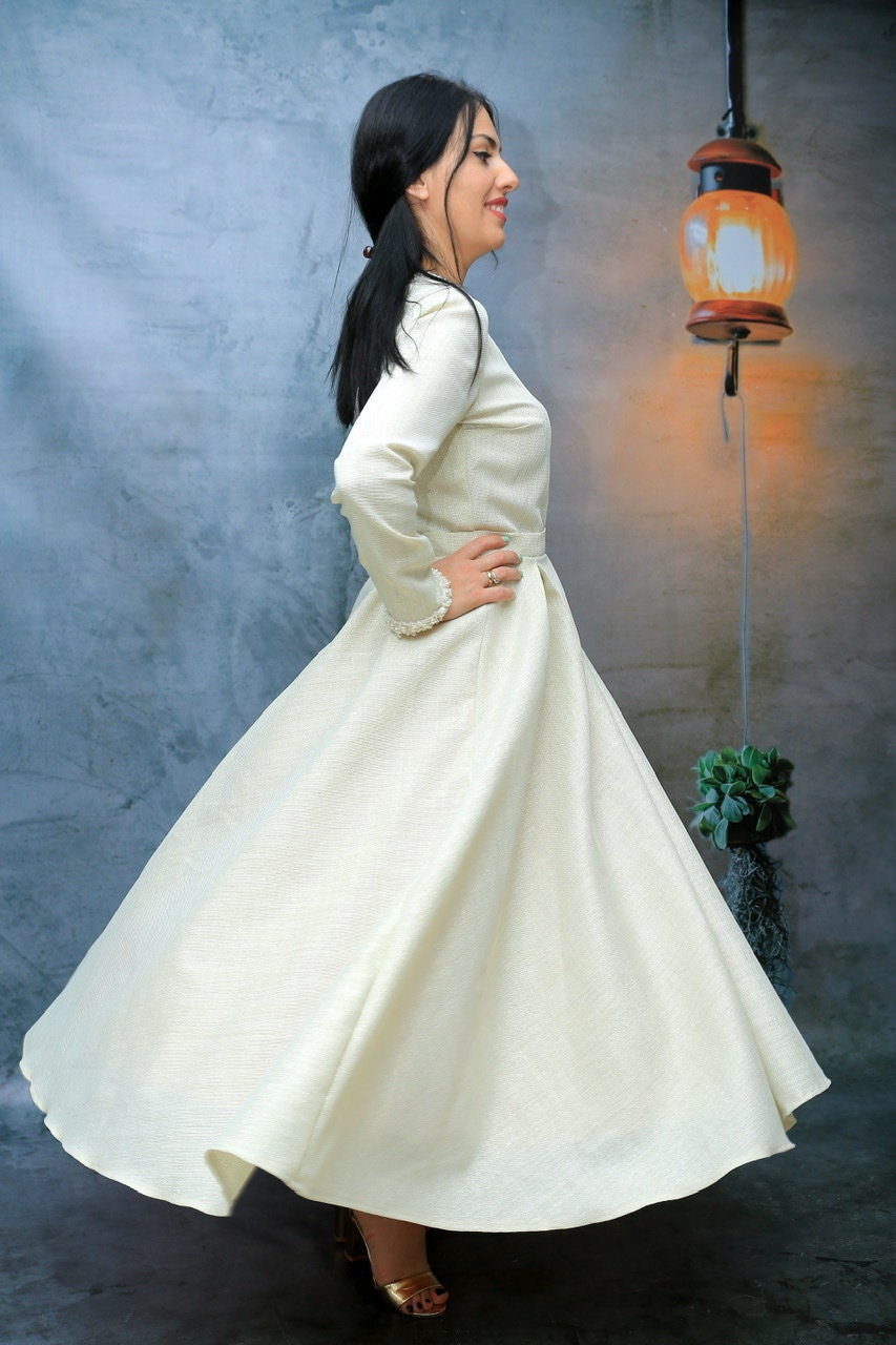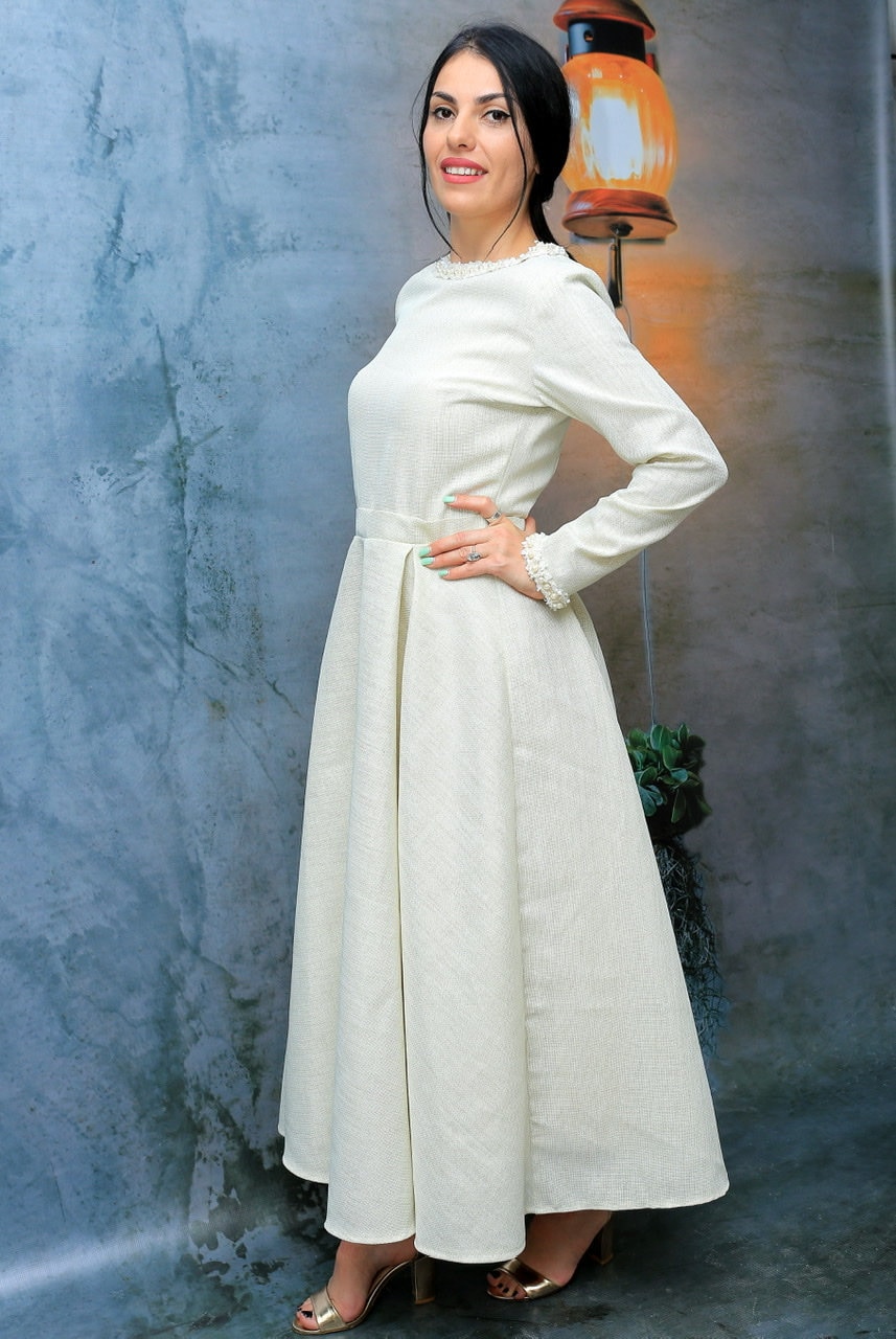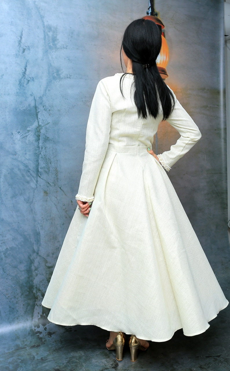 Stone Medium Weight Handkerchief Linen Dress, Engagement Party Dress, Bridal Dress, Appliqué, Wedding Dress,
