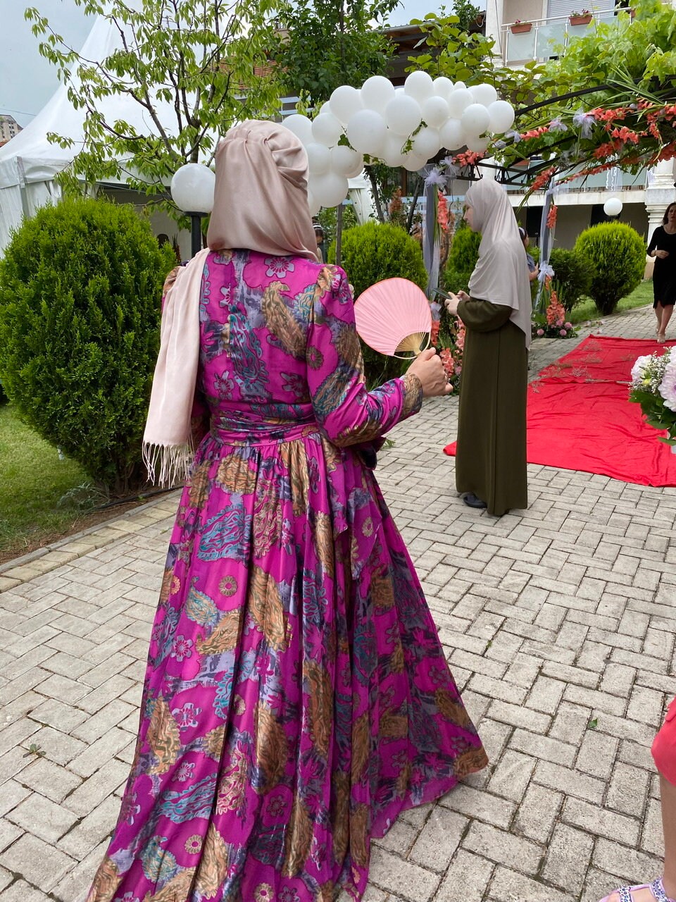 Hot pink floral dress wrapped in a showll belt stunning for weddings & parties