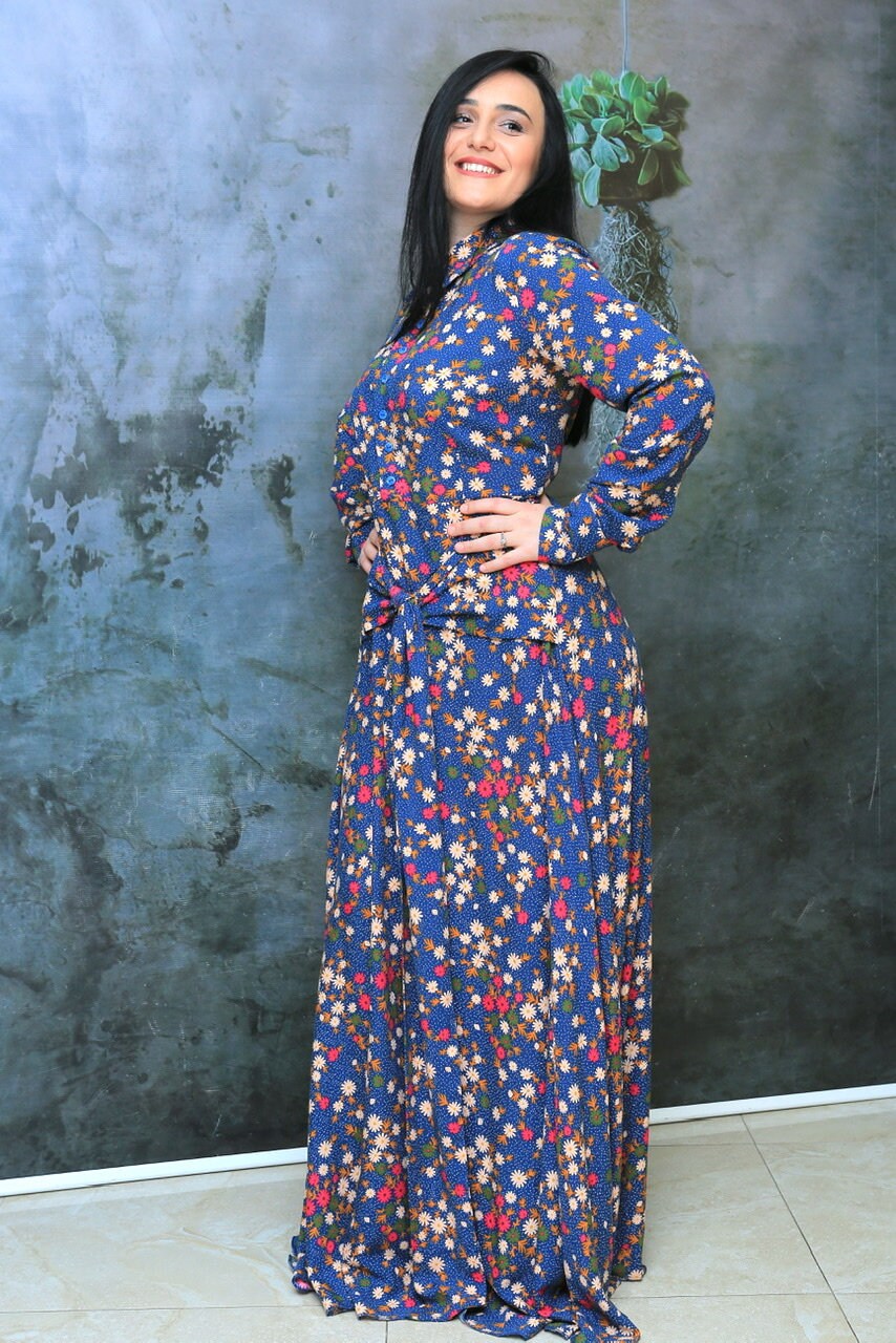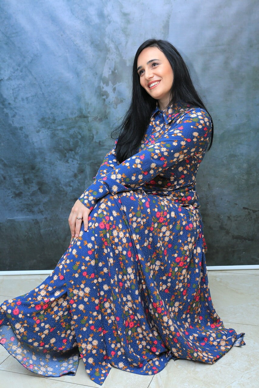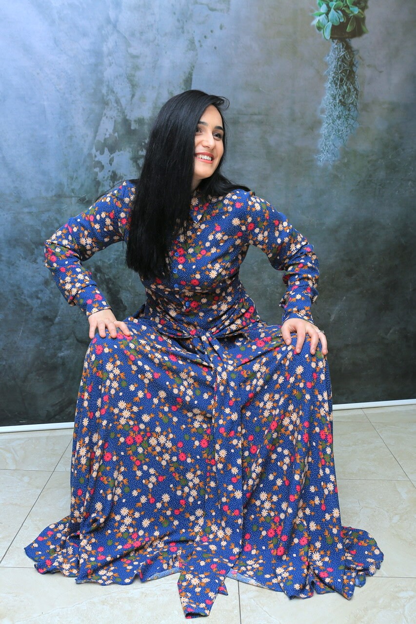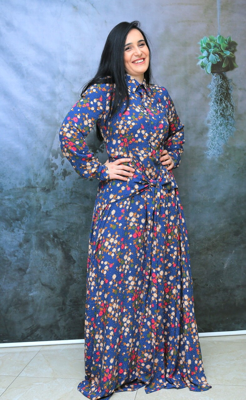 Beautiful cotton fabric, in a Floral blue summer Dress