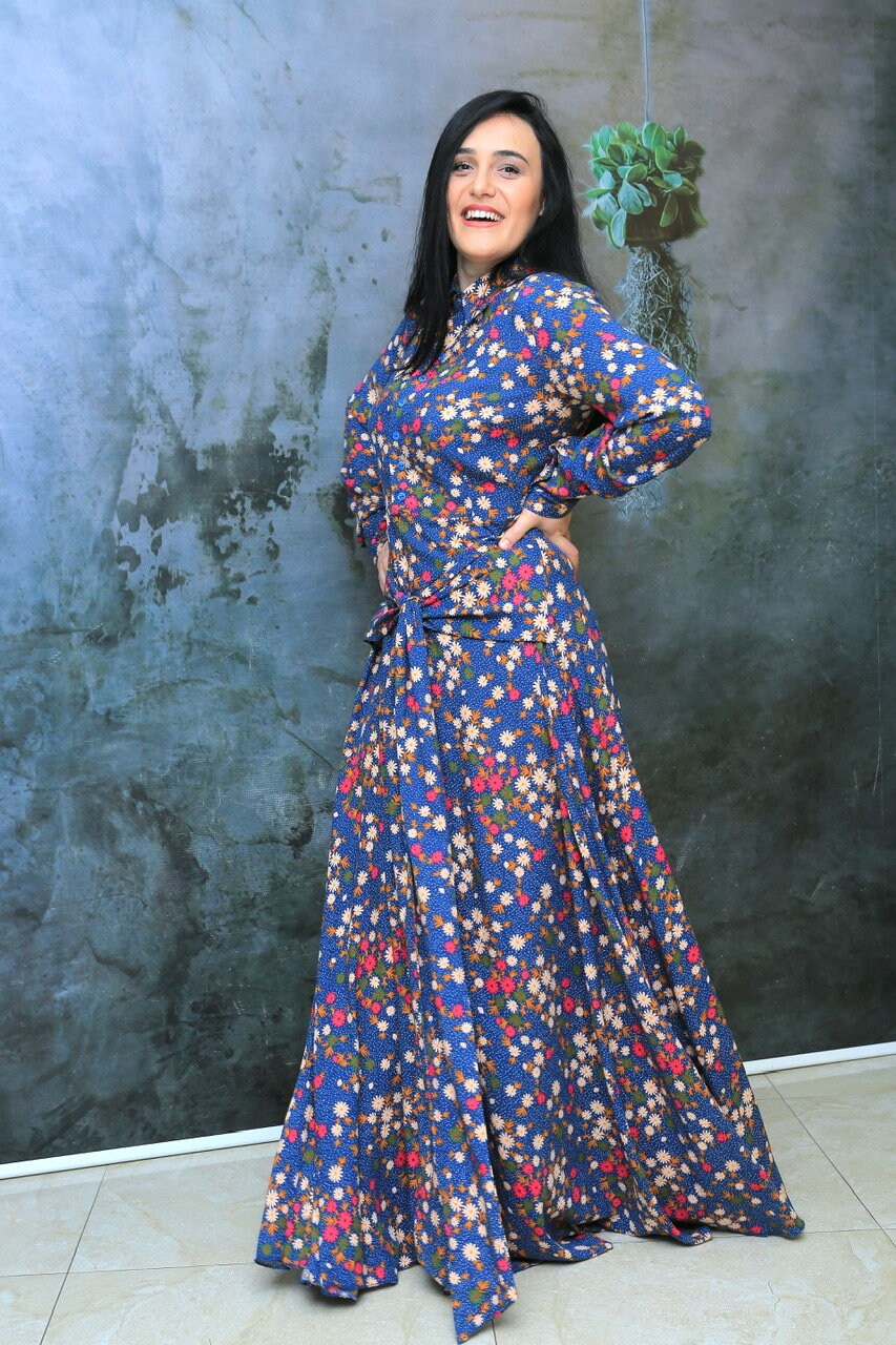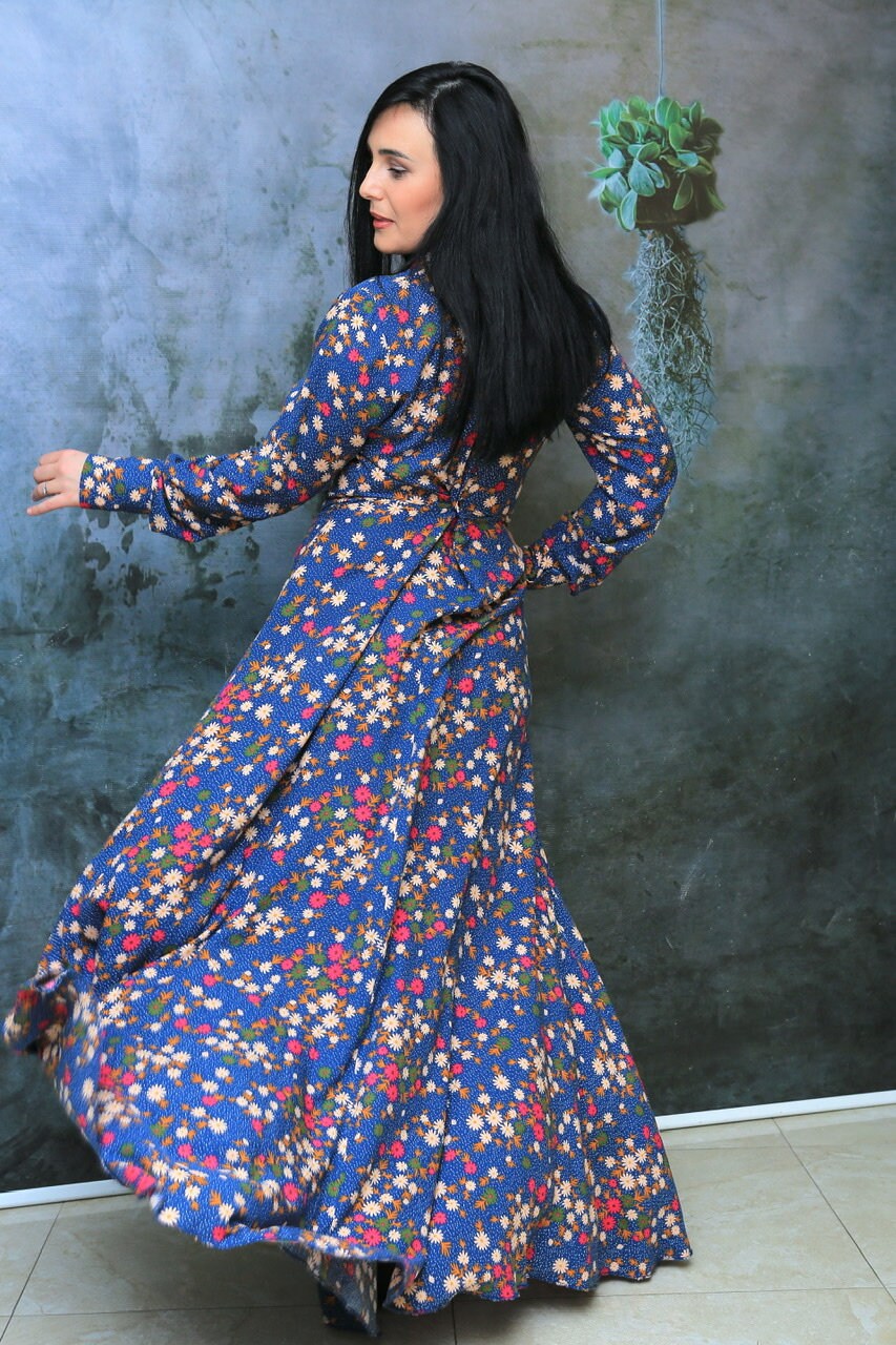 Floral Dress/ Maxi Dress/ Blue Floral Dress/ Summer Dress/ Party Dress, Long Cotton Dress,