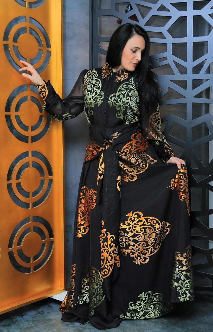 Black Georgette Dress/ Two Tone Floral Tulle, Velvety, Cocktails,Black Dress, Party,