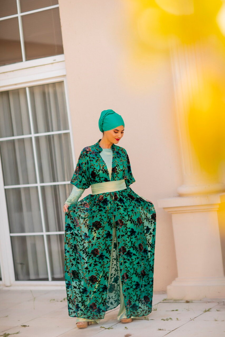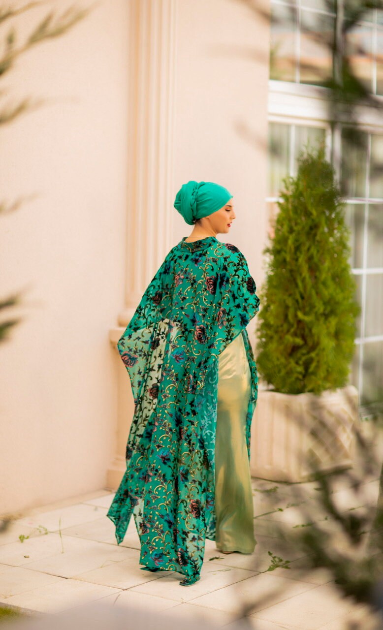 Two piece lime jumpsuit in a floral velvet tulle stunning for summertime