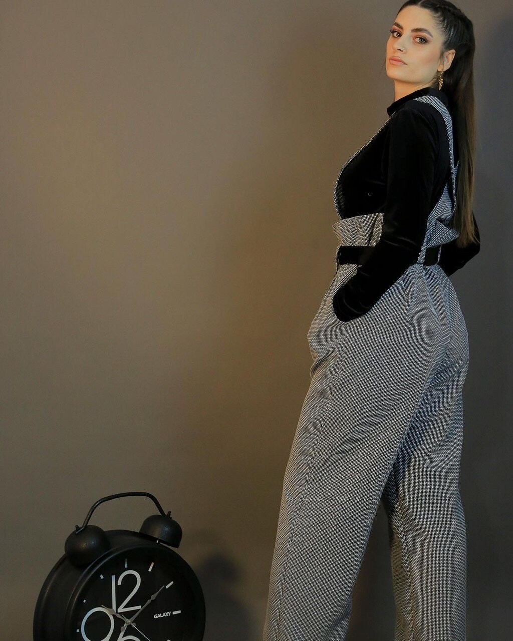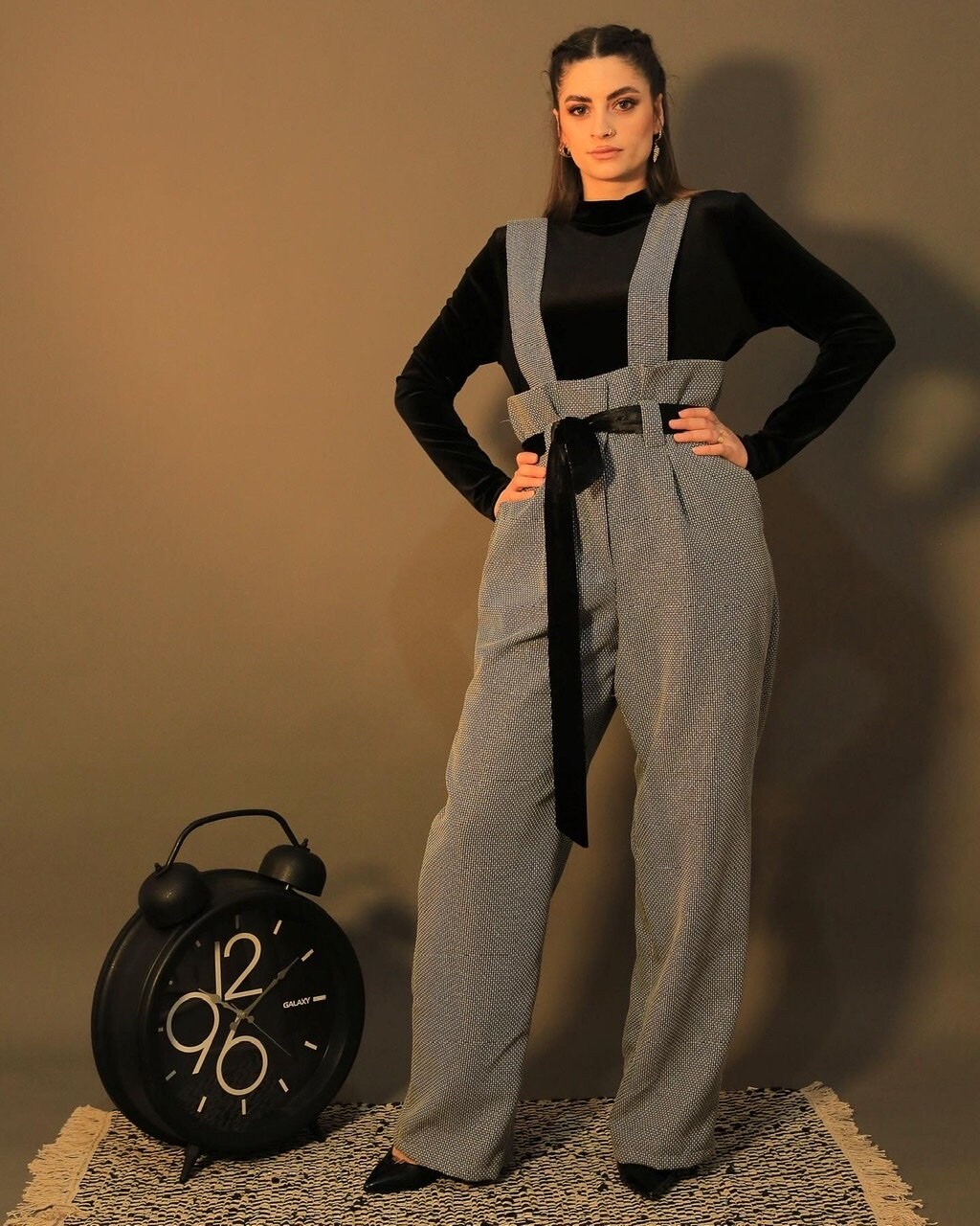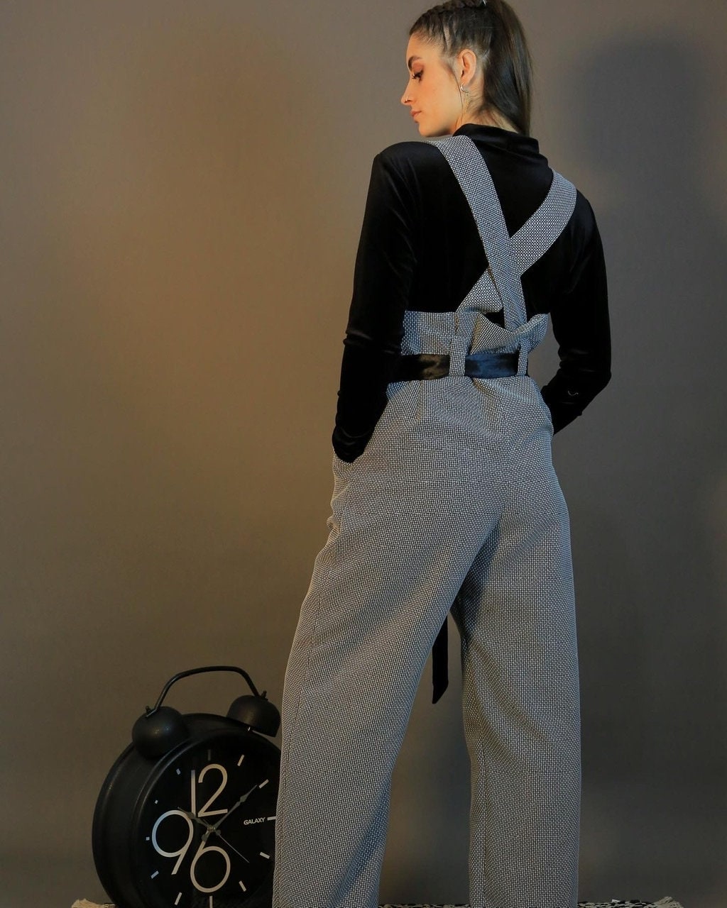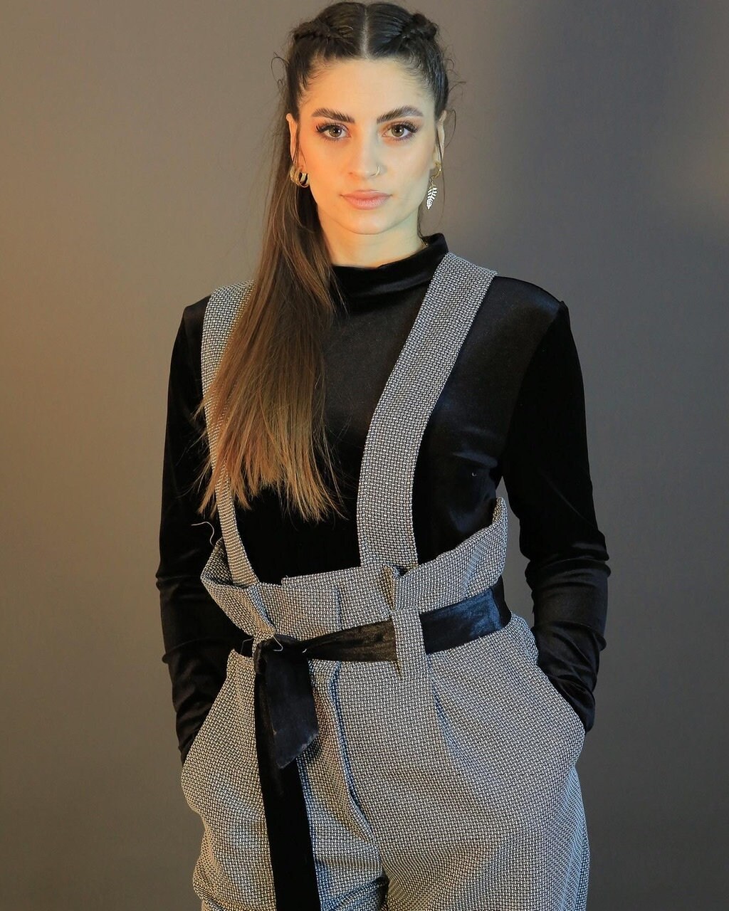 Autumn Jumpsuit in a beautiful grey fabric and black velvet top