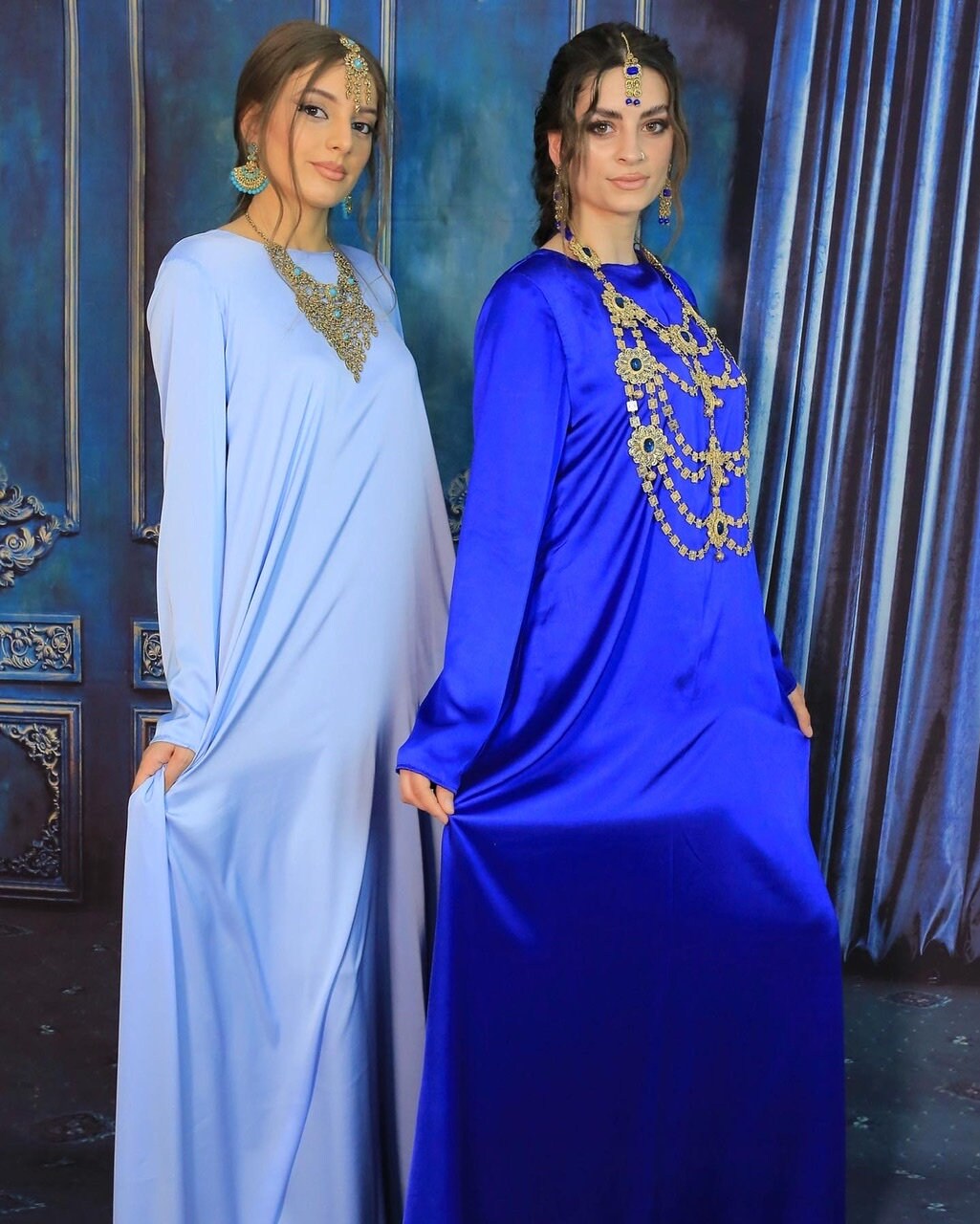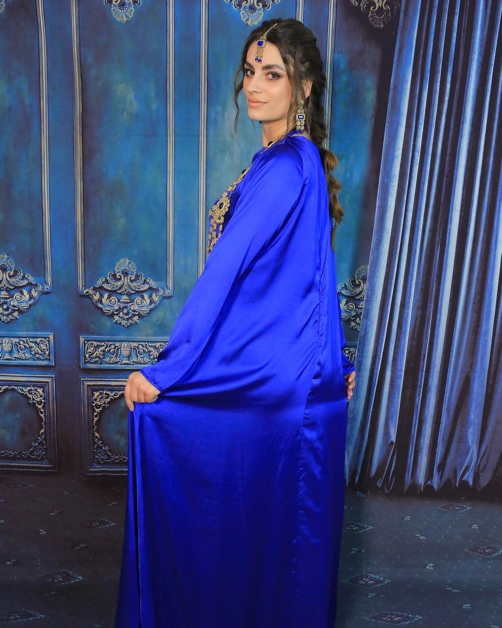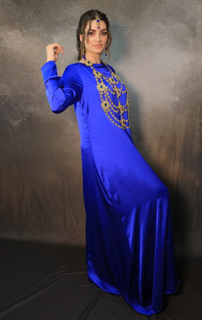 Long Satin Dress/ Blue Satin Dres/ Ottoman Style Dress