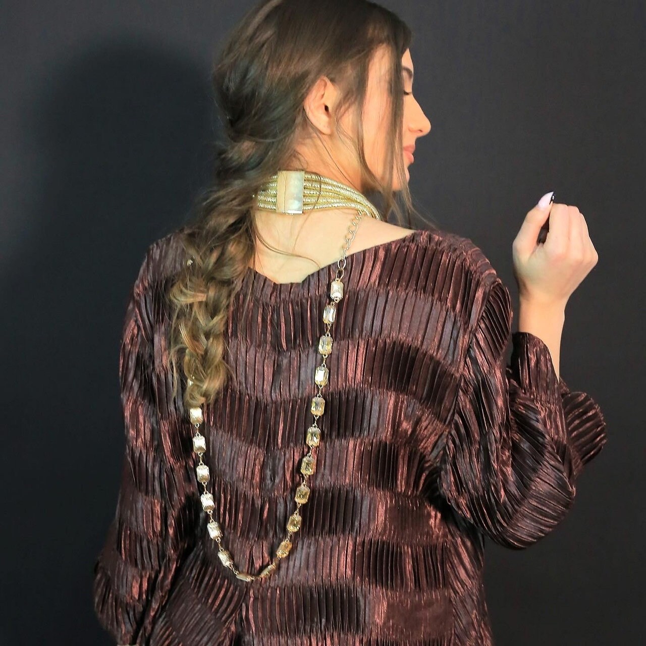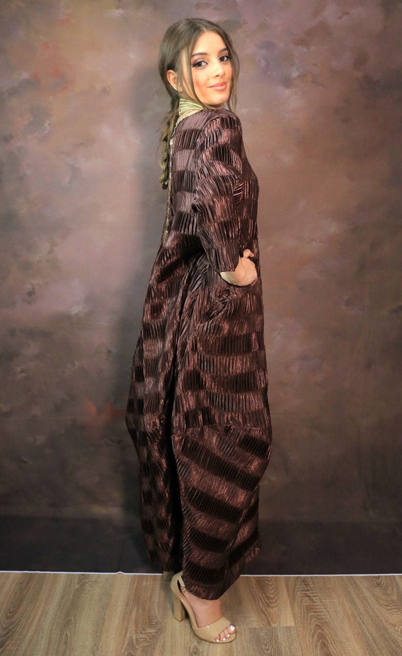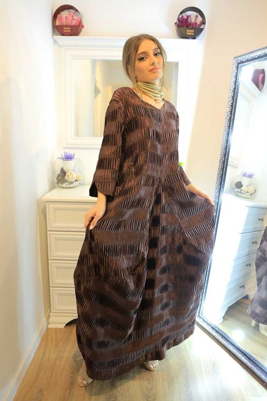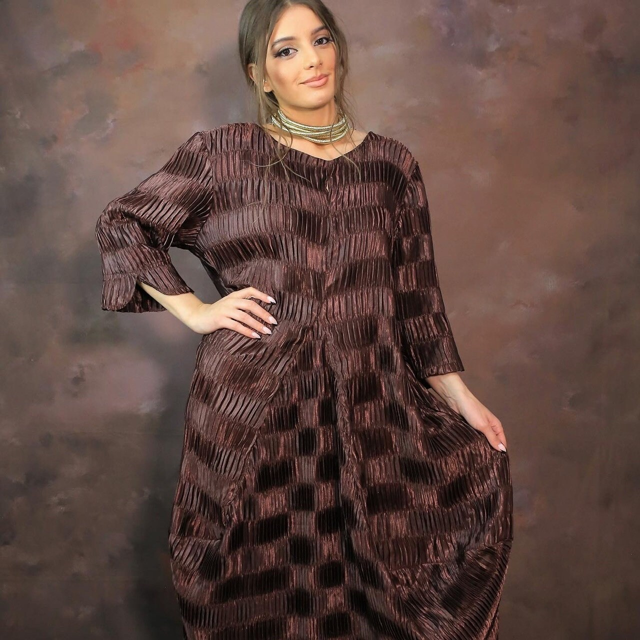 Beautiful Dress in a Brown crushed Satin, perfect for evening’s and Parties.