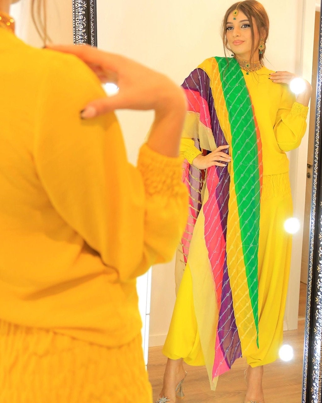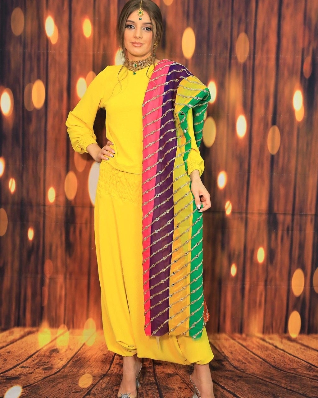 Two Piece Set, Yellow Saree Dress, Bridesmaid Saree set, Wedding Saree Set,