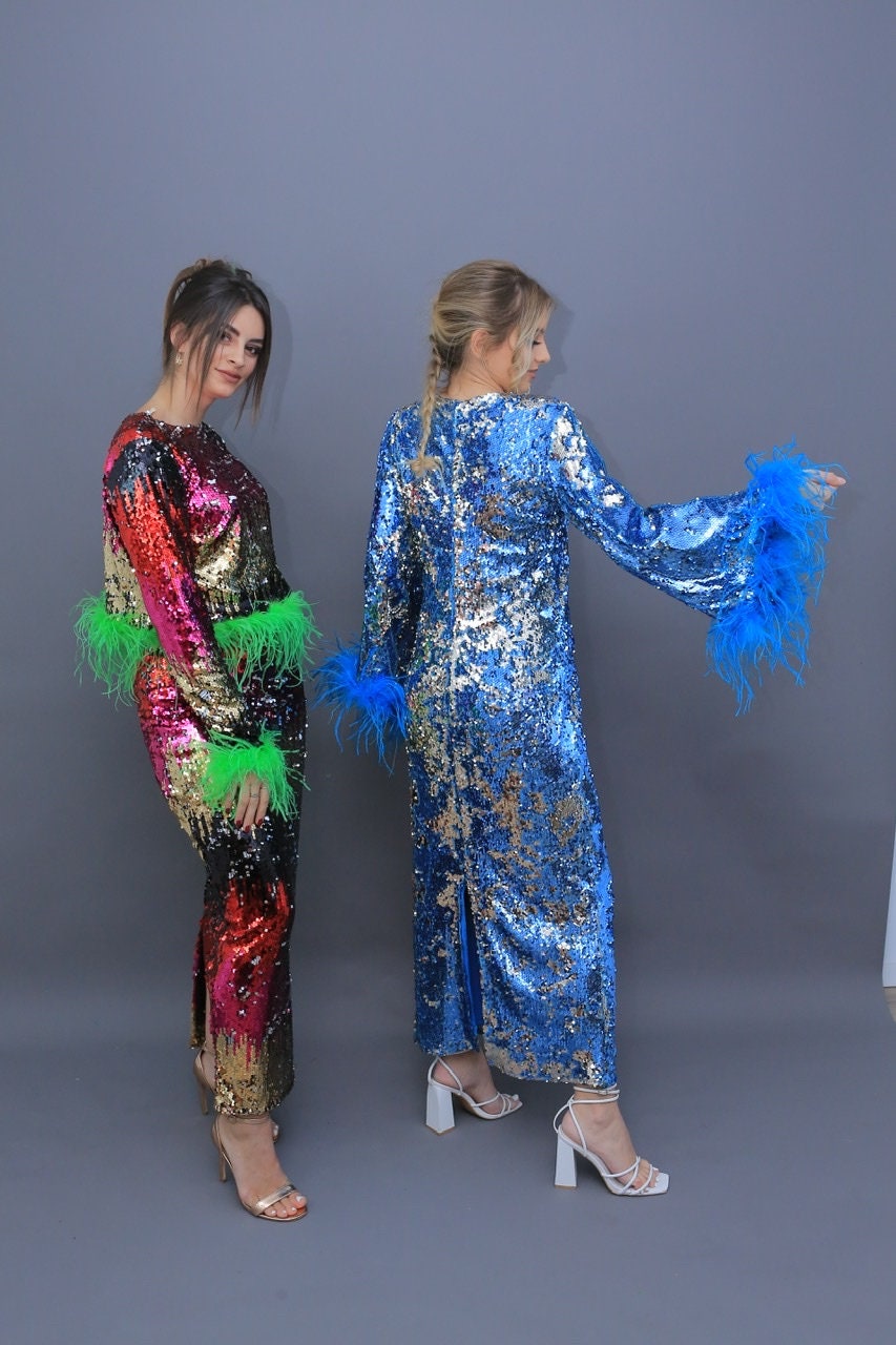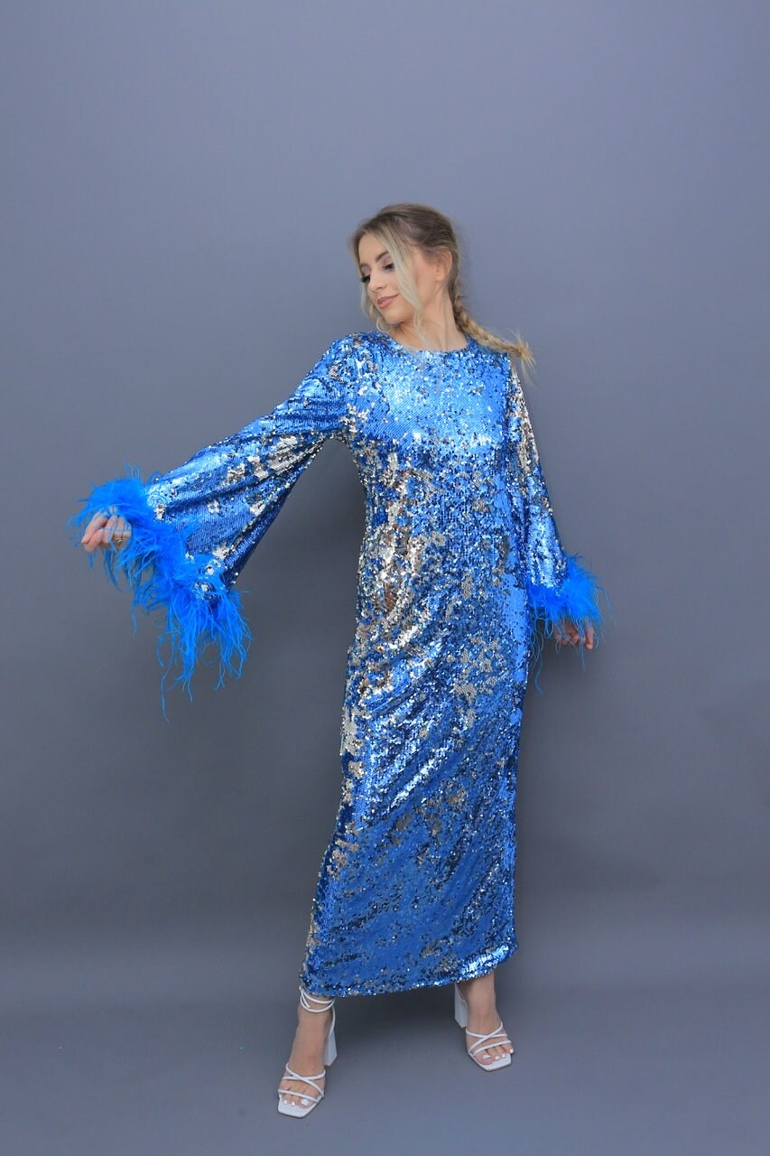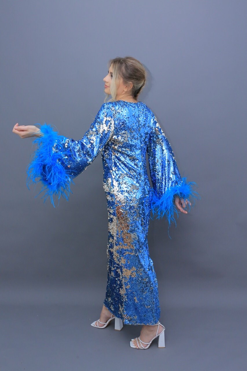 Blue Sequin Dress/ Party Dress/ Bridal Dress/ Long Sequin Dress/ Disco Party Dress/