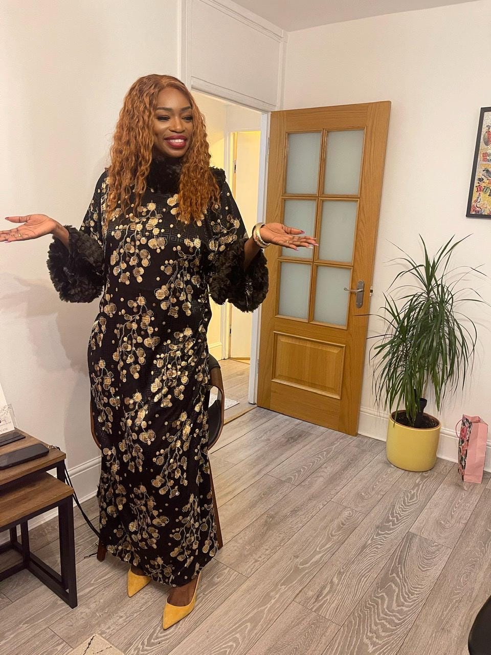 Silk Maxi Dress/ Silk/ Swarovski Crystals/ Maxi Dress/ Floral Dress/ Faux Fur/ Brown Dress/