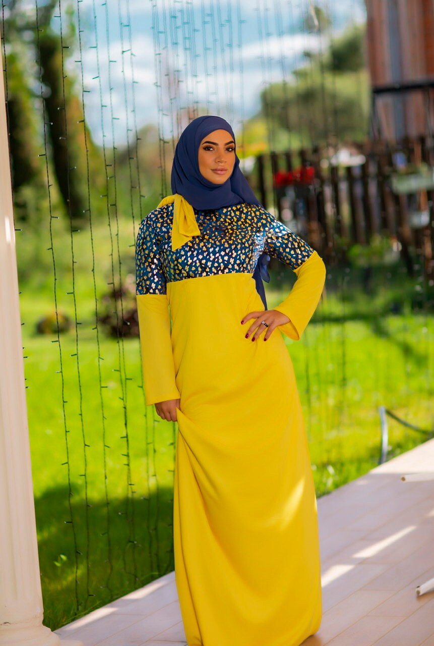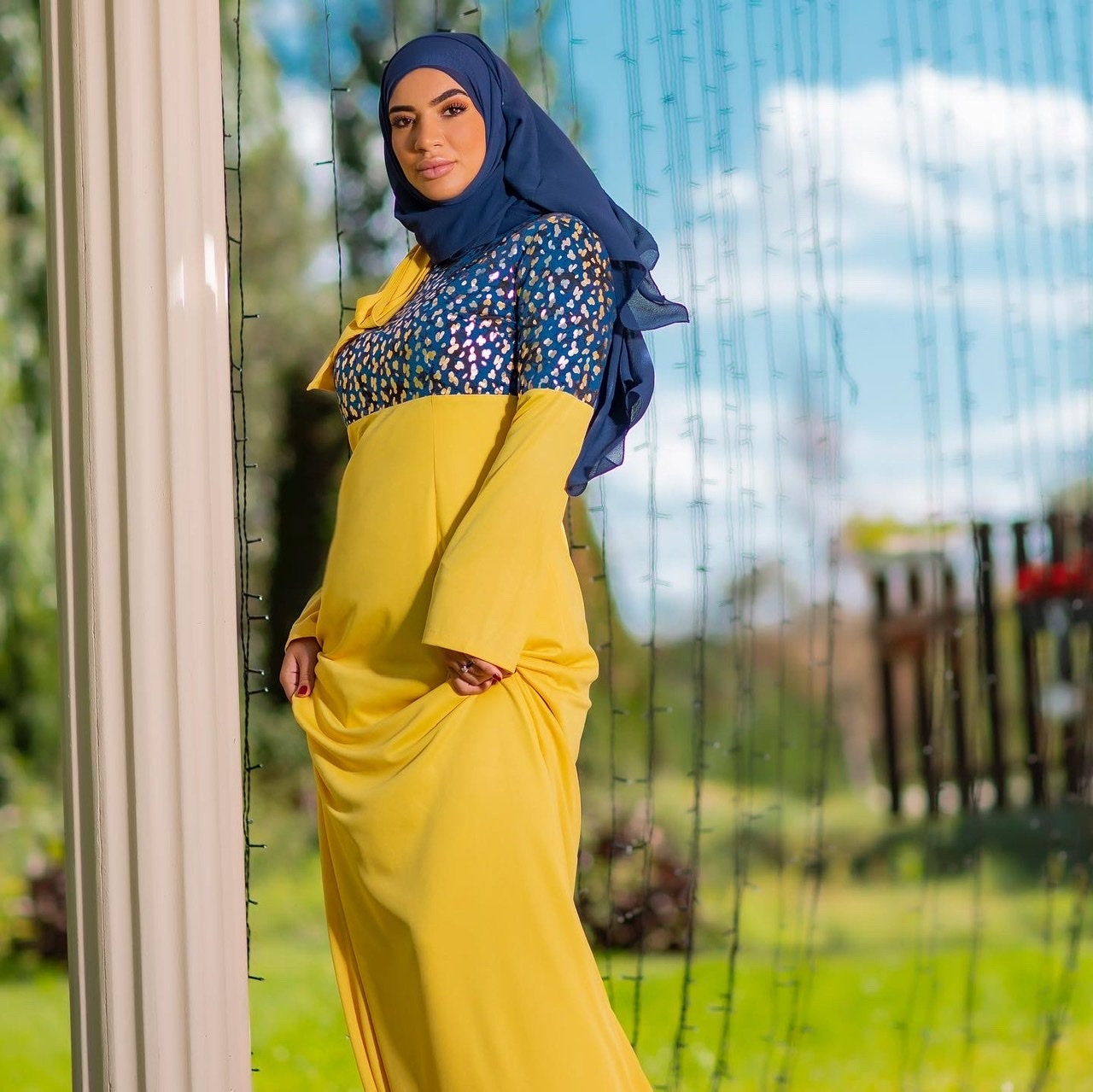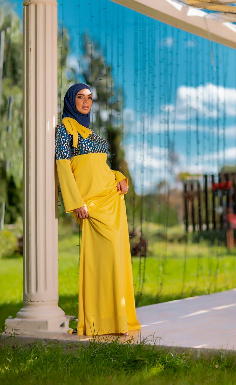 Blue and yellow, Gold laminated, cotton dress, Summer Dress, Yellow Maxi Dress, Bridal Dress,