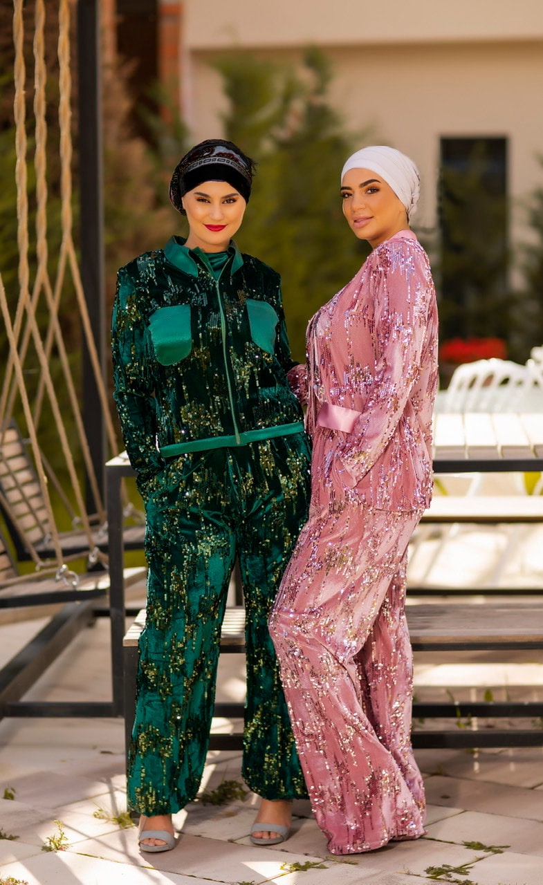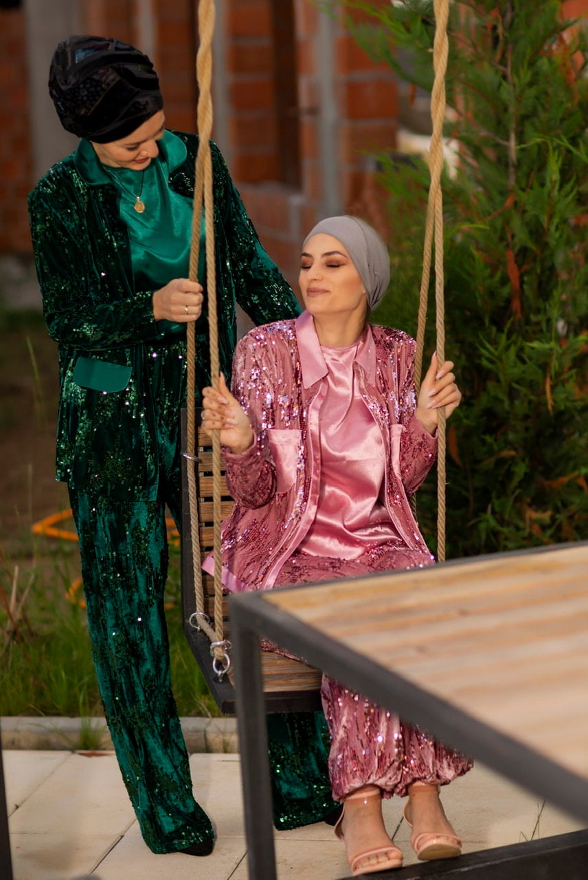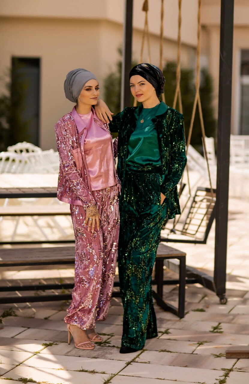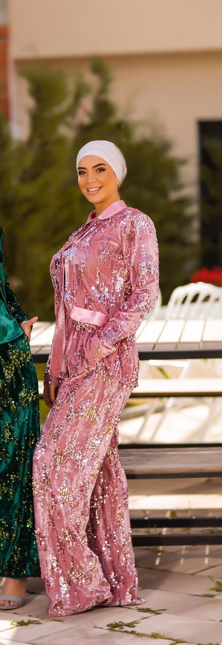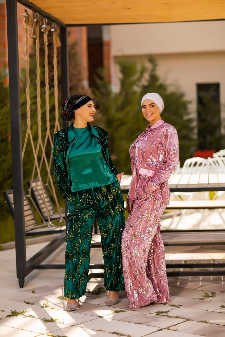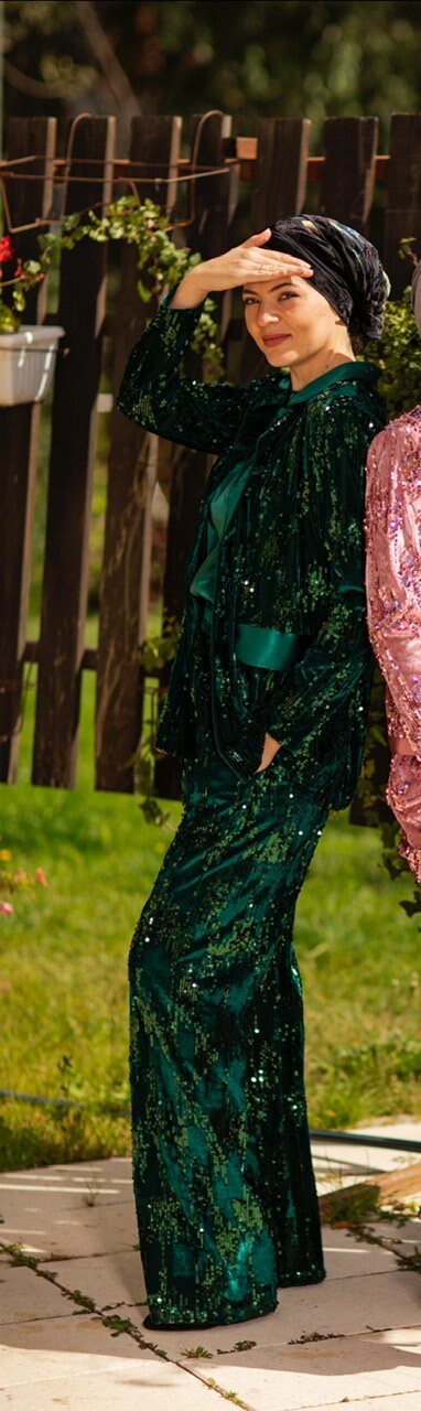 Green and Pink, Velvet, Ladies Suits Trouser,3 Piece Set, sequin ladies suite, velvet suit,, cocktail party suite, Bridal suite