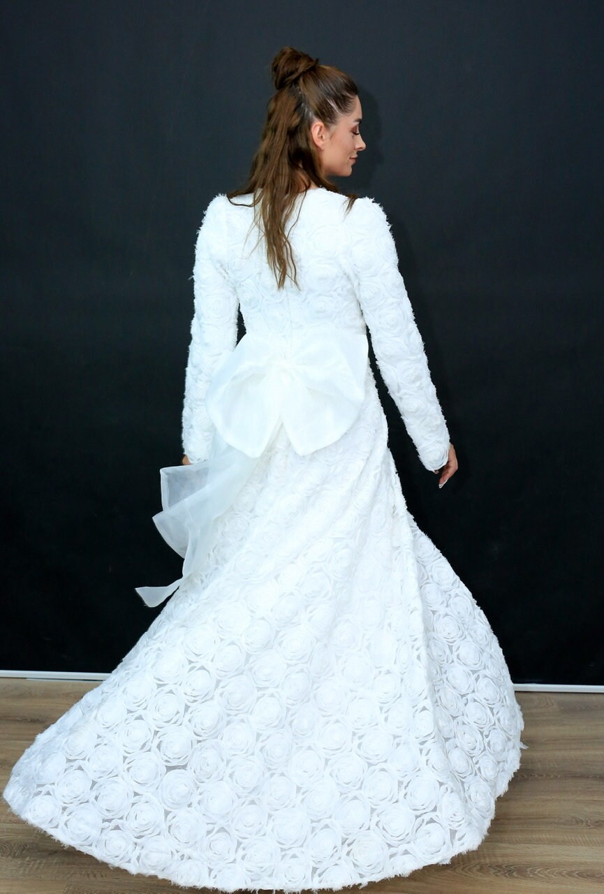 Stunning, White Rose,Appliqué, Tulle, Bridal Dress, Wedding Dress, White Floral Dress, Three D dress, Royal Wedding Dress,