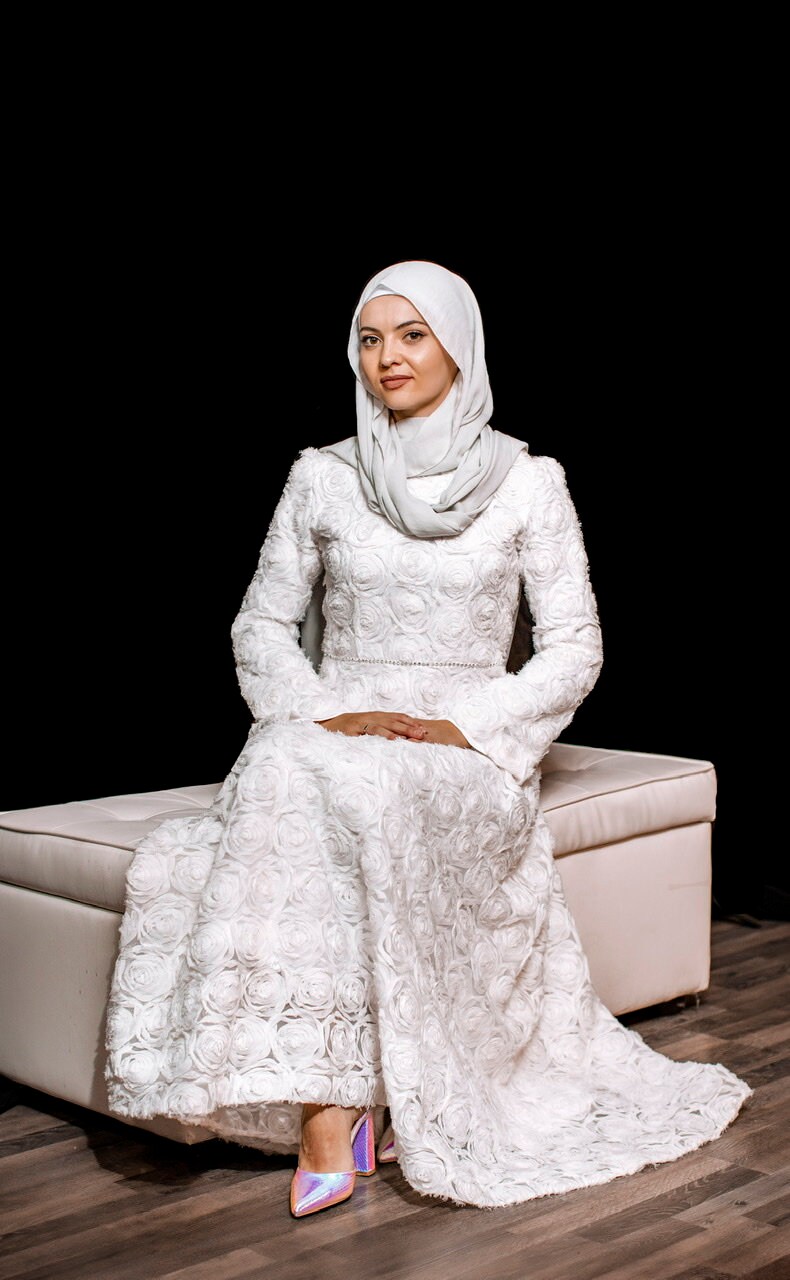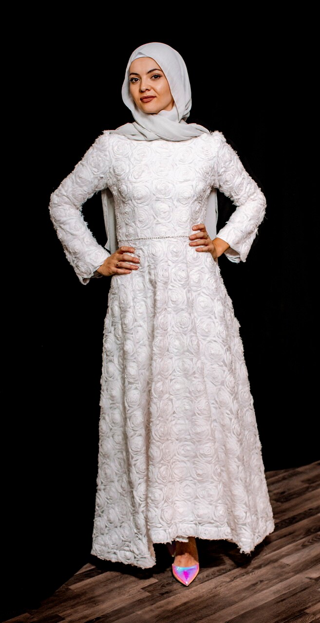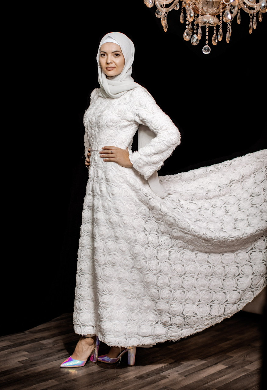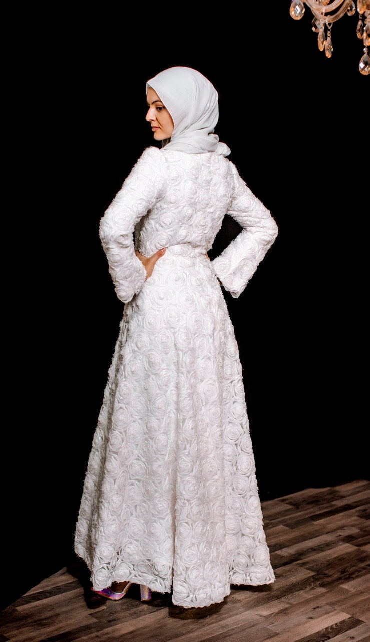 High quality fabric from Joel&son .Bridal dress 3D white rose appliqué on a long dress. Carefully handmade.