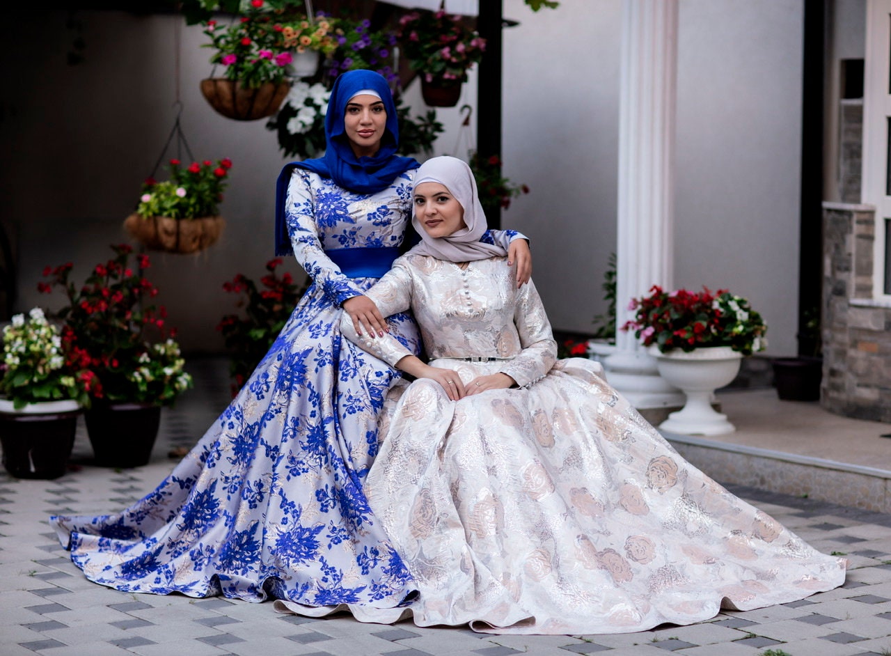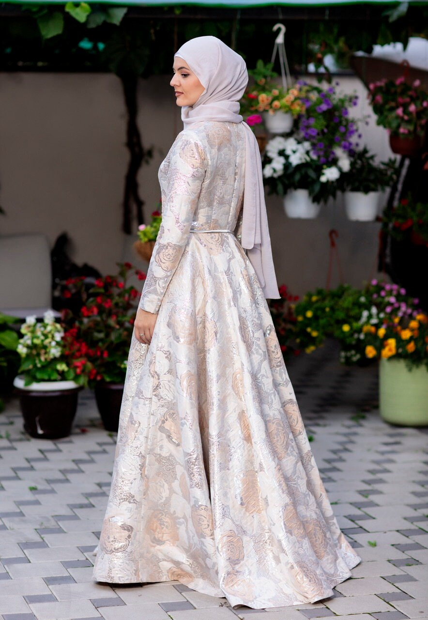 Beige Two Tone Floral Dress/ Brocade Maxi Dress/ Bridal Dress/ Party Dress/ Modest Dress/ Wedding Dress/