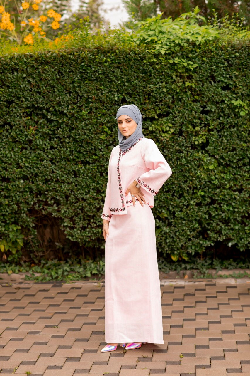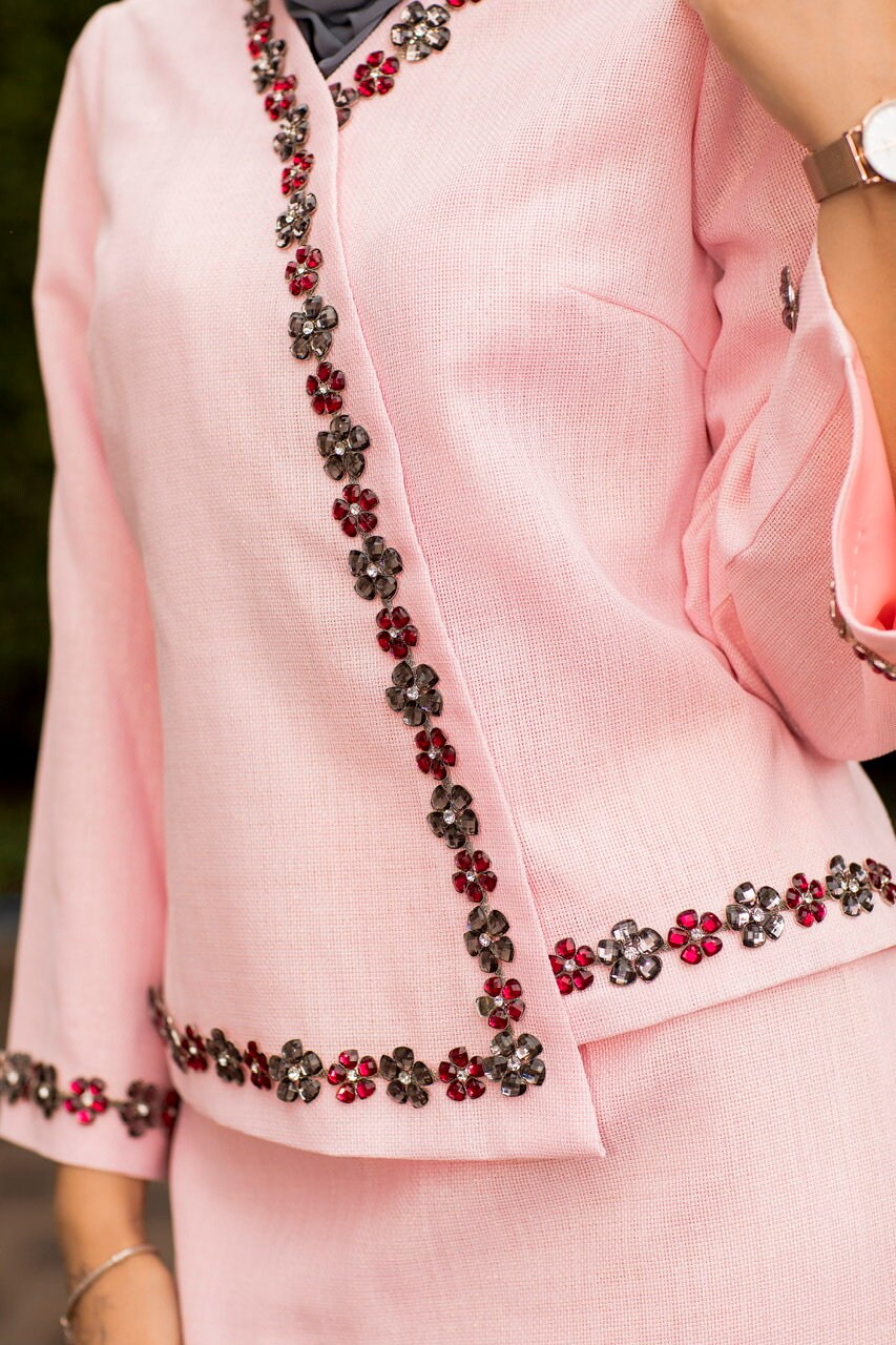 Two piece set, light Pink, Linen, Skirt, Modest Skirt, Bridal dress, Appliqué, Ladies Skirt,