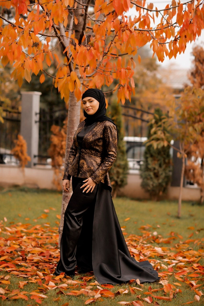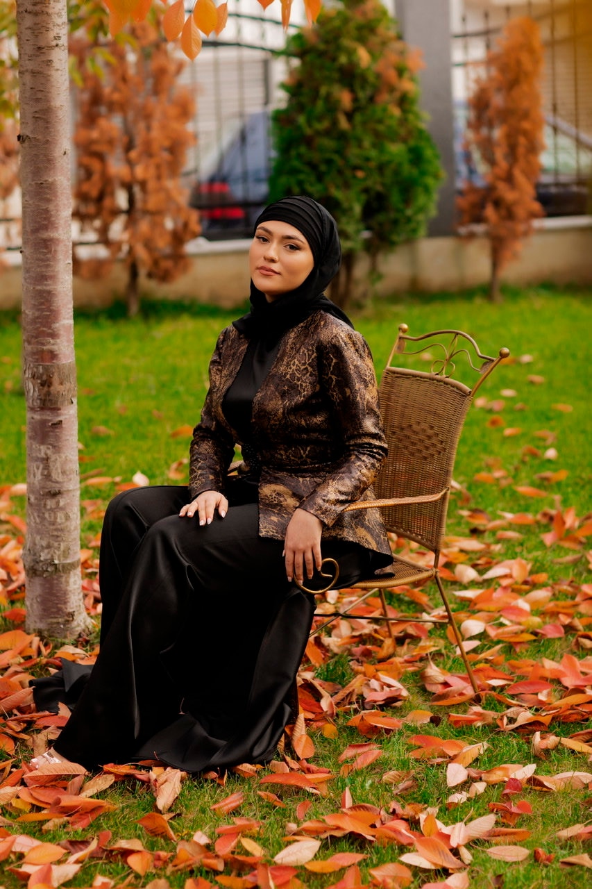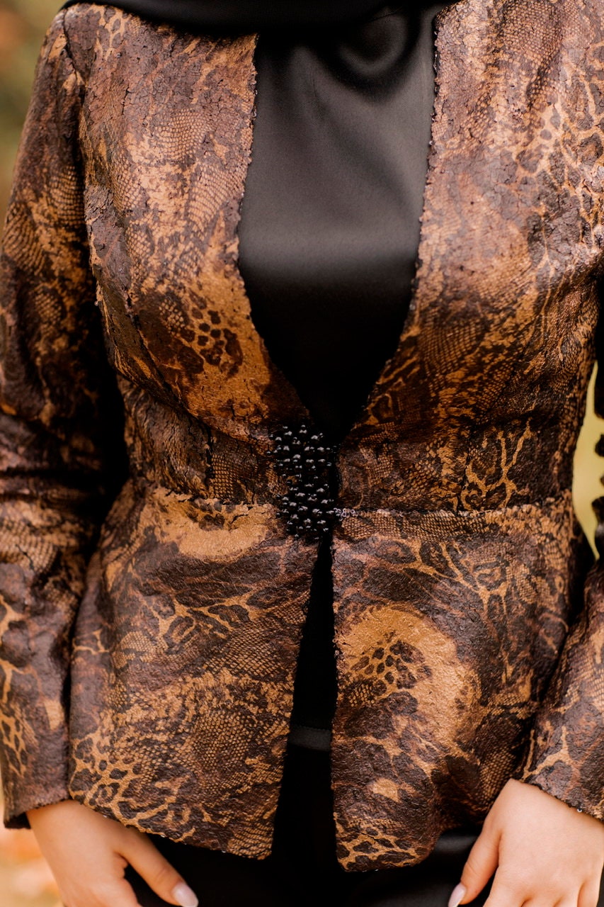 Black Skirt overlay trousers blended over with a Snake animal print brown Jacket