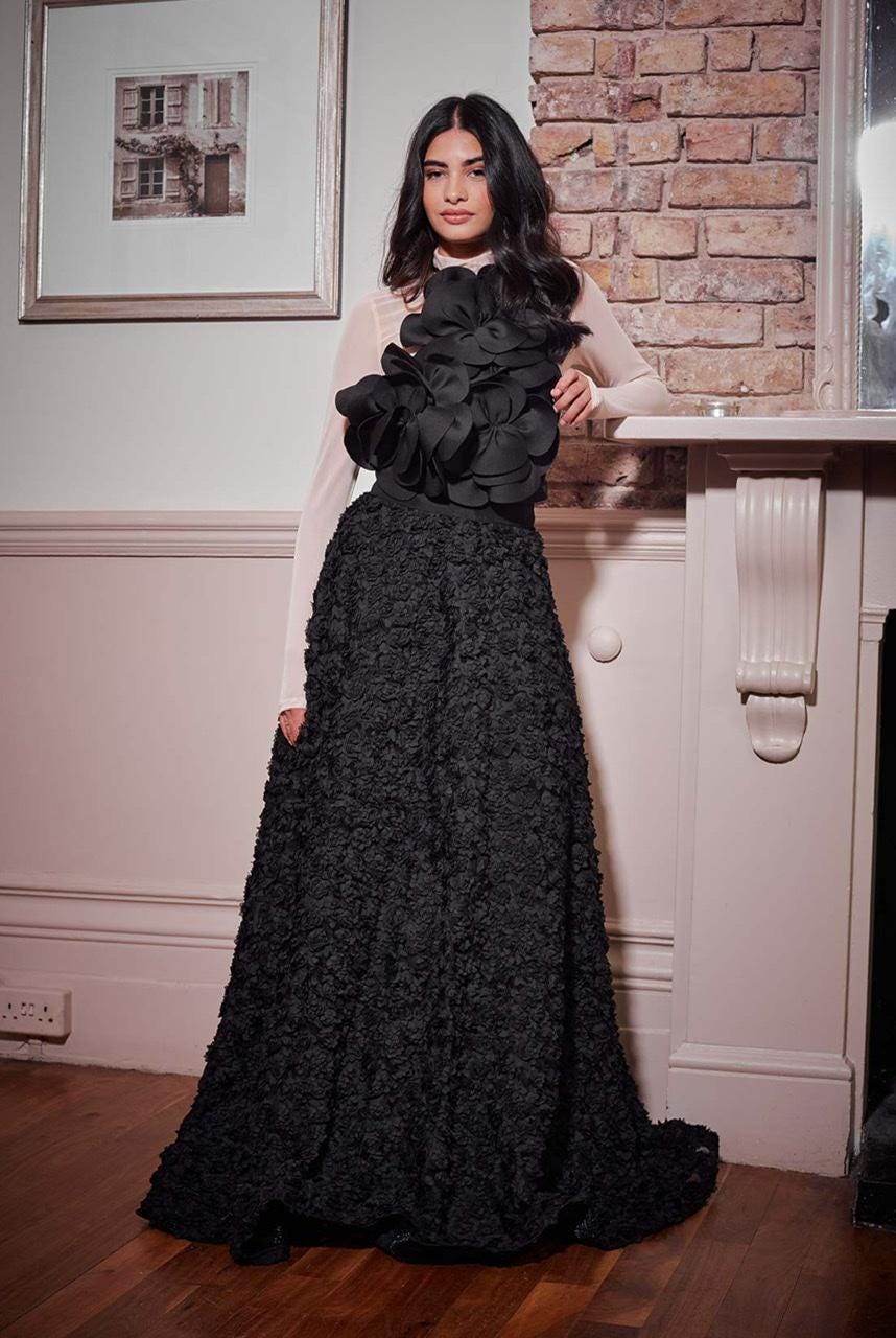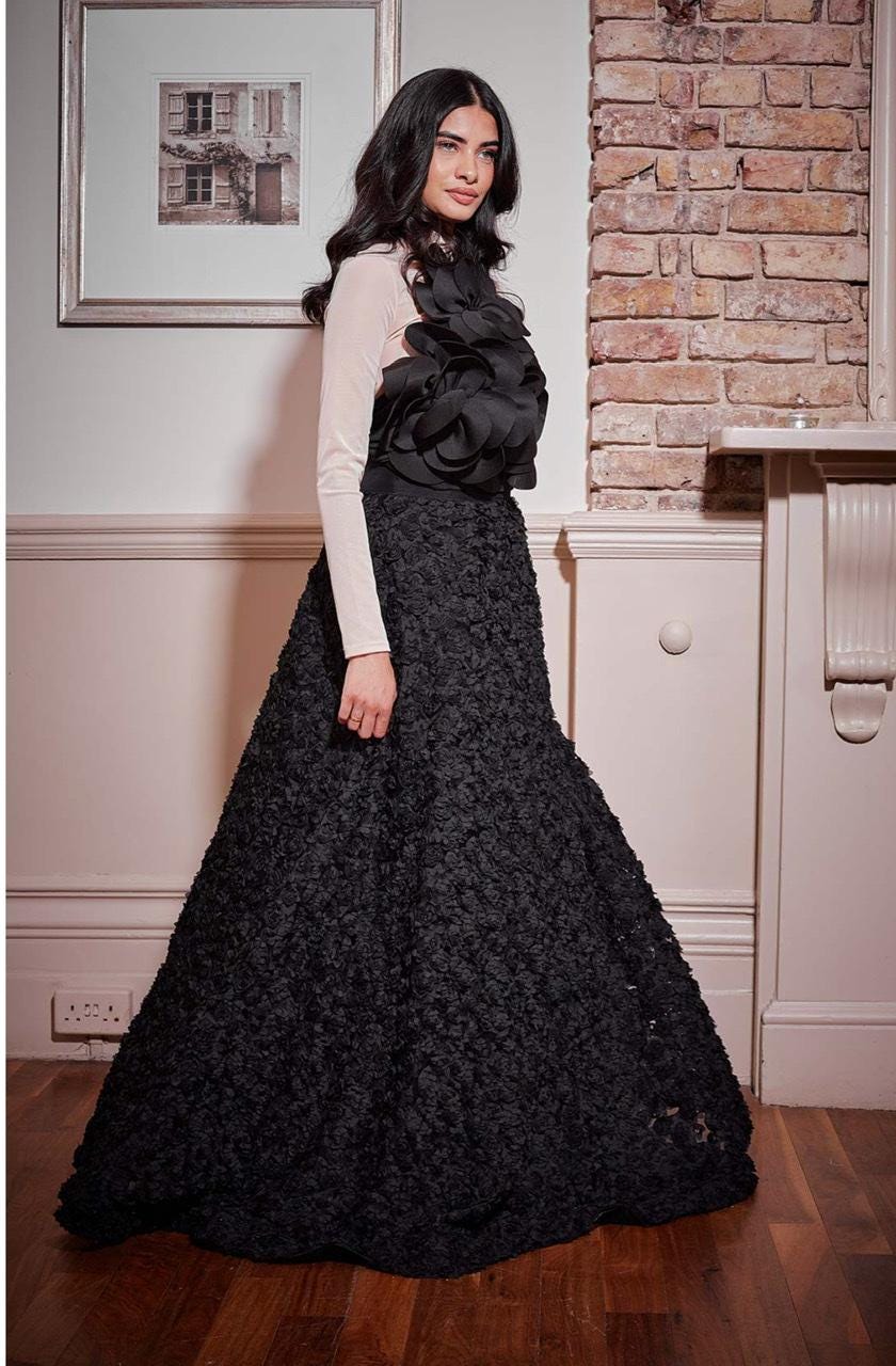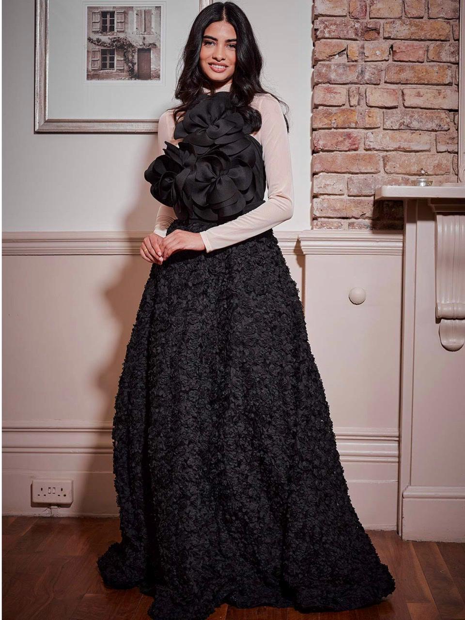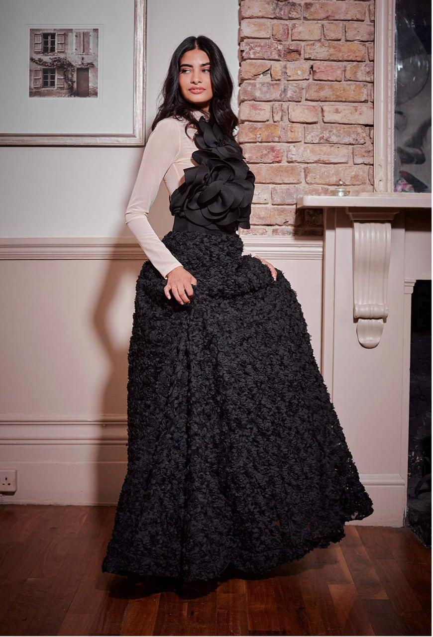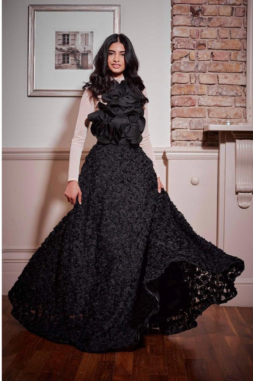 Black Embroidered Georgette Skirt Set: Hand Beaded Bridal Dress
